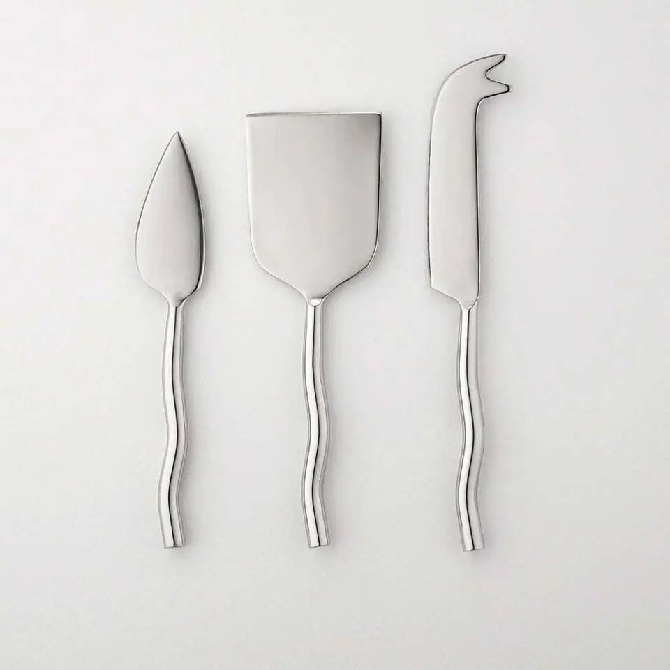 Juego de Quesos de Acero Inoxidable de Último Diseño, Estilo Moderno y Lujoso, Acabado Plateado, Apto para Lavavajillas, para Cuchillos de Queso, Pan y Mantequilla