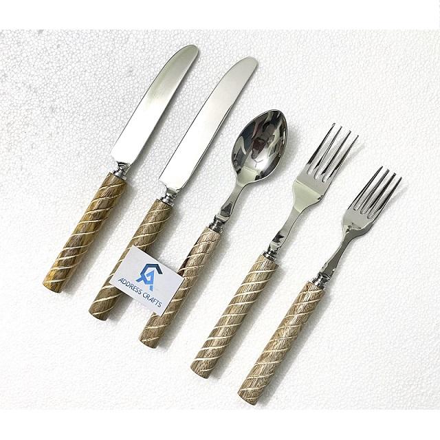 Juego de Cubiertos de acero inoxidable de último diseño con mango de madera, juego de cubiertos de 5 piezas, vajilla de comedor con acabado negro