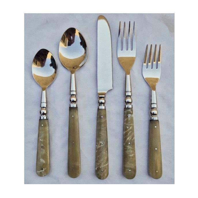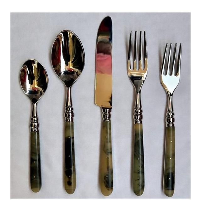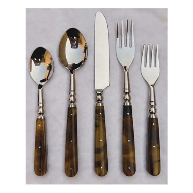 Juego de cubiertos de acero inoxidable de último diseño con mango de resina, cuchara para postre, tenedor para pescado, juego de cuchillos, cubiertos pulidos a espejo para la mesa