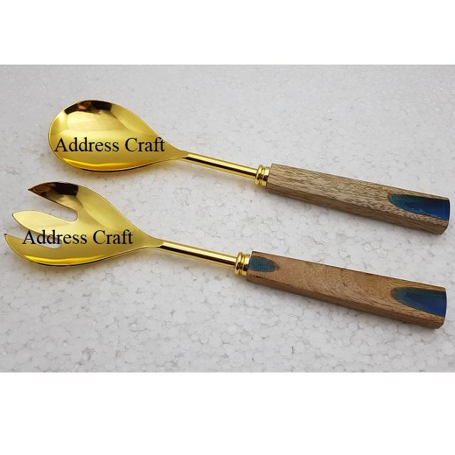 Juego de servidor de ensalada de acero inoxidable de último diseño, cuchara de ensalada de estilo clásico, tenedor, mango de mármol, vajilla de Metal Premium para servir