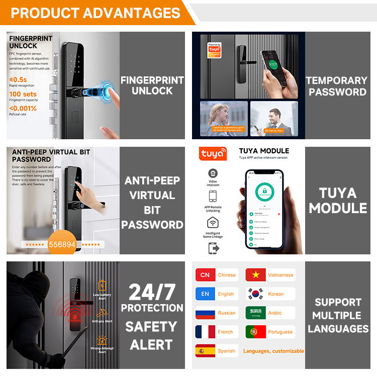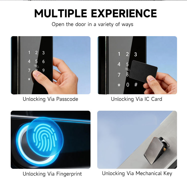 Unlock way:Fingerprint + Password + Card + Key + Temporary Password+APP