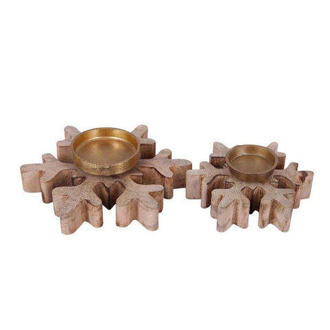 Portavelas de Diseño Moderno con Base de Madera y Acabado de Aluminio, con Forma de Ciervo Plateado para Árbol de Navidad, Ideal para Hogar y Bodas