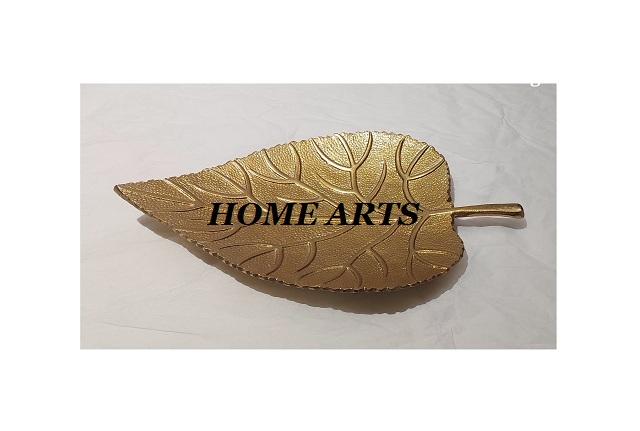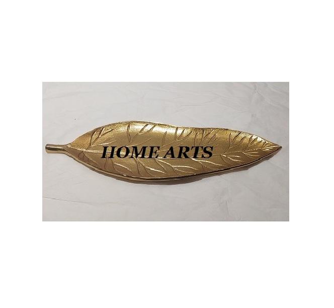 Bandeja de Servicio con Diseño de Hoja, Hecha a Mano en Aluminio Color Dorado, para los Más Vendidos