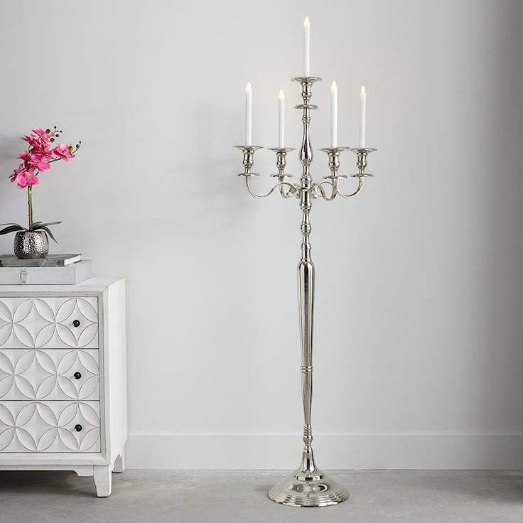 Candelabro Alto Plateado de Último Diseño, Centro de Mesa para Bodas con 5 Velas, Decoración, Portavelas Hecho a Mano en Venta