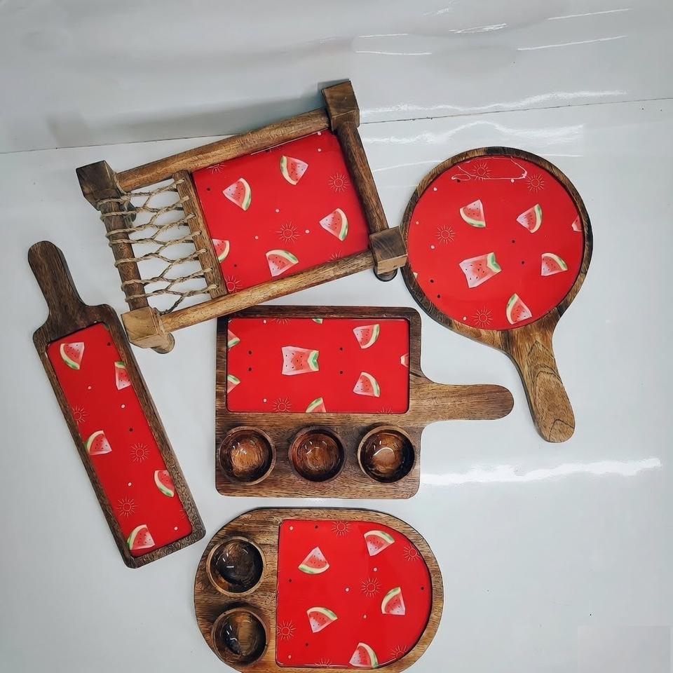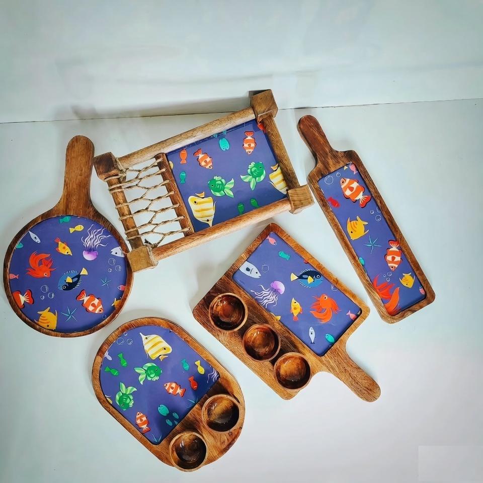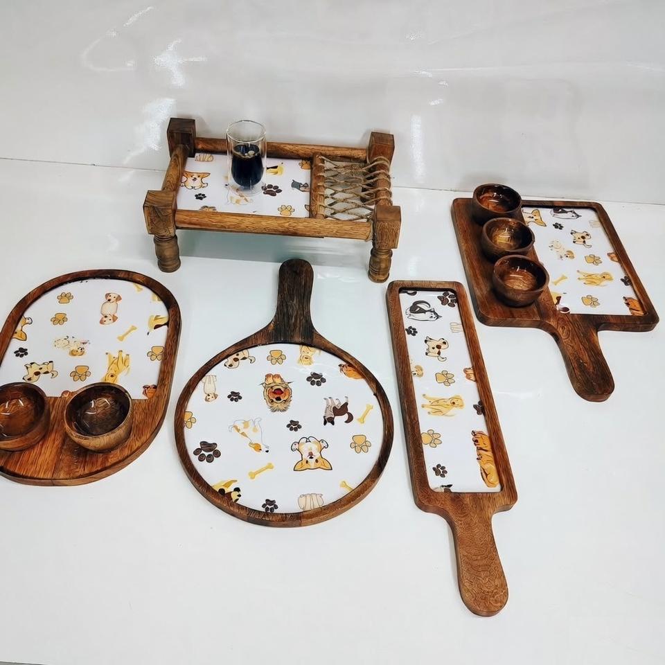 Latest Design Wooden Dinnerware Set With Pizza Platter Chopping Boards Desserts & Foods Serving Tray And Platter At Best Price