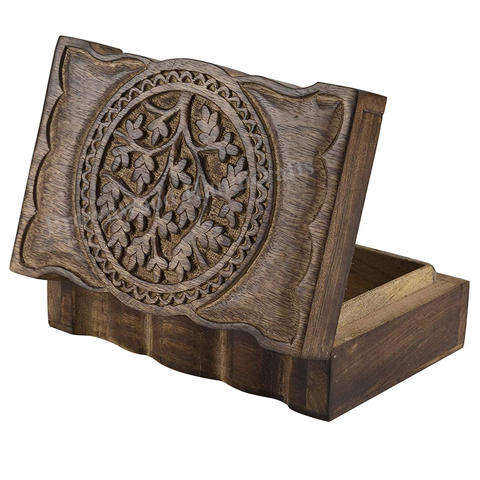 Caja de regalo de madera de último diseño con tapa con diseño tallado a mano para uso decorativo en la mesa del hogar, caja de regalo de madera para joyería