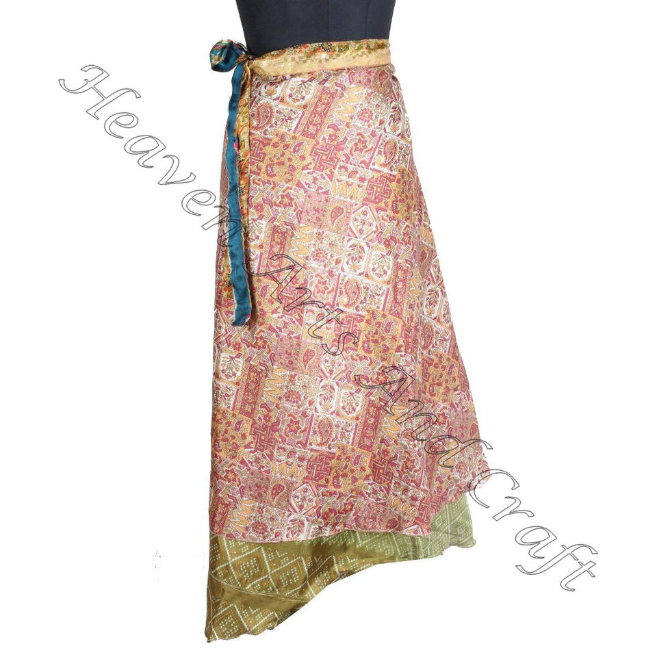 Último diseño de faldas envolventes de 2 capas Reversible Magic Silk Saris Wrap Falda larga Faldas envolventes de seda en gran descuento