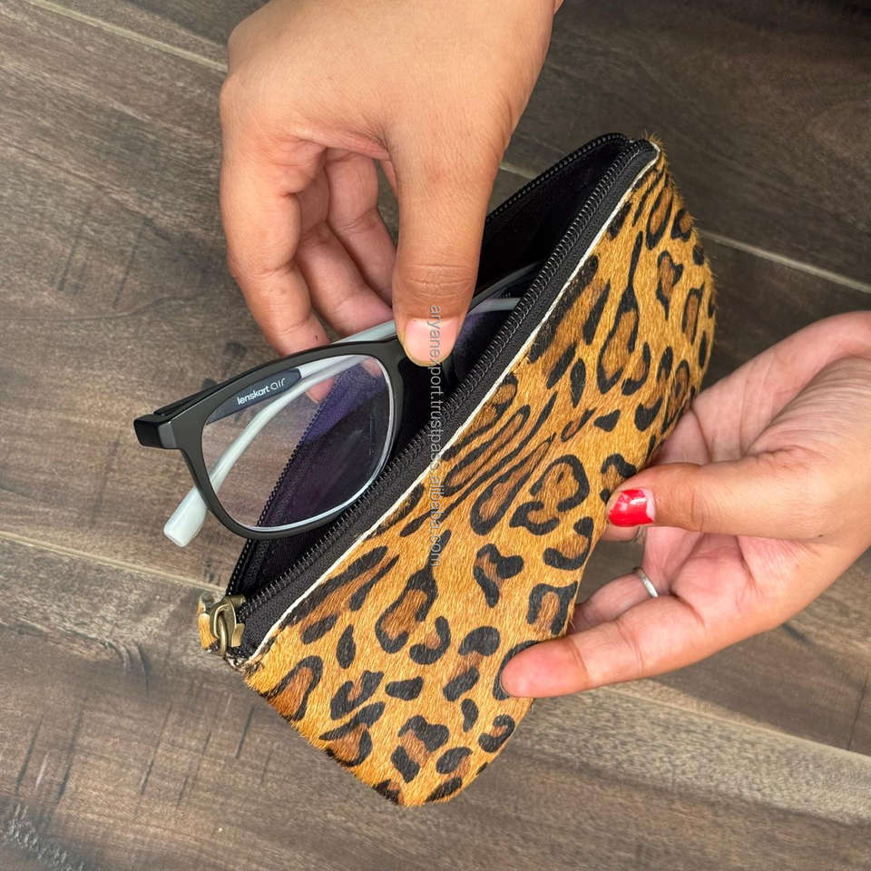 Nombre del producto:Estuche de espectáculo de cuero de vaca con estampado de leopardo