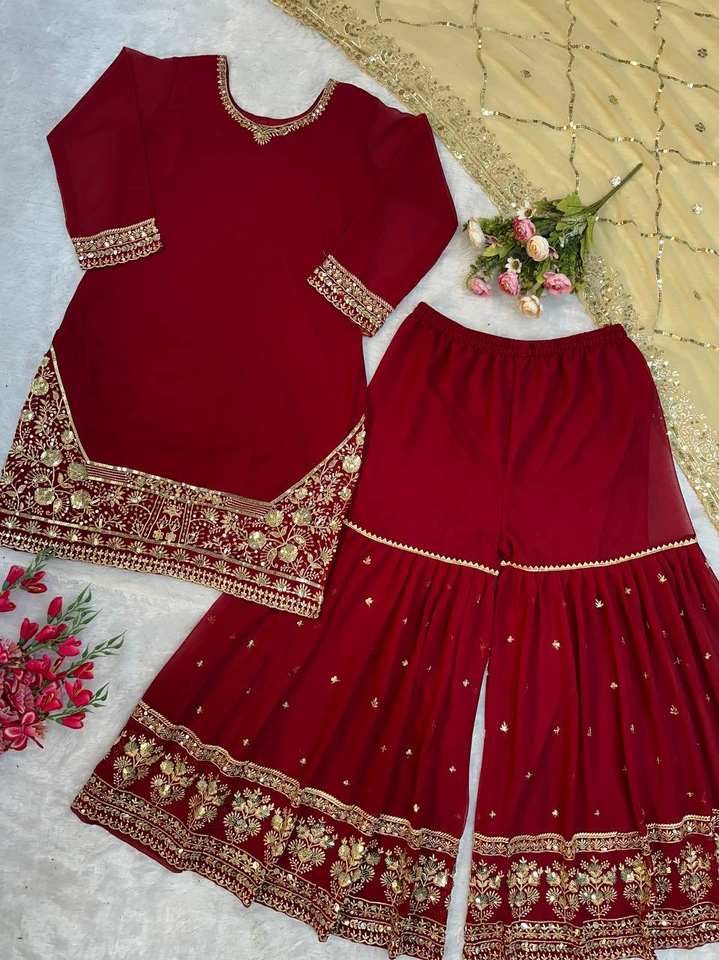 Nombre del producto:Top de la mirada del desgaste del partido, Sharara Palazzo y Dupatta