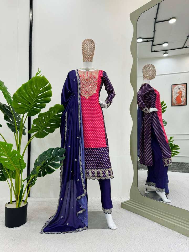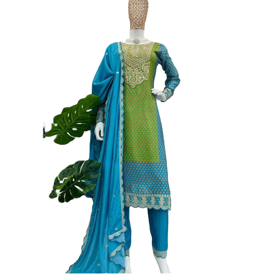 El último diseñador Chinon Silk Coding Sequence Work Kurti Set de FabZone