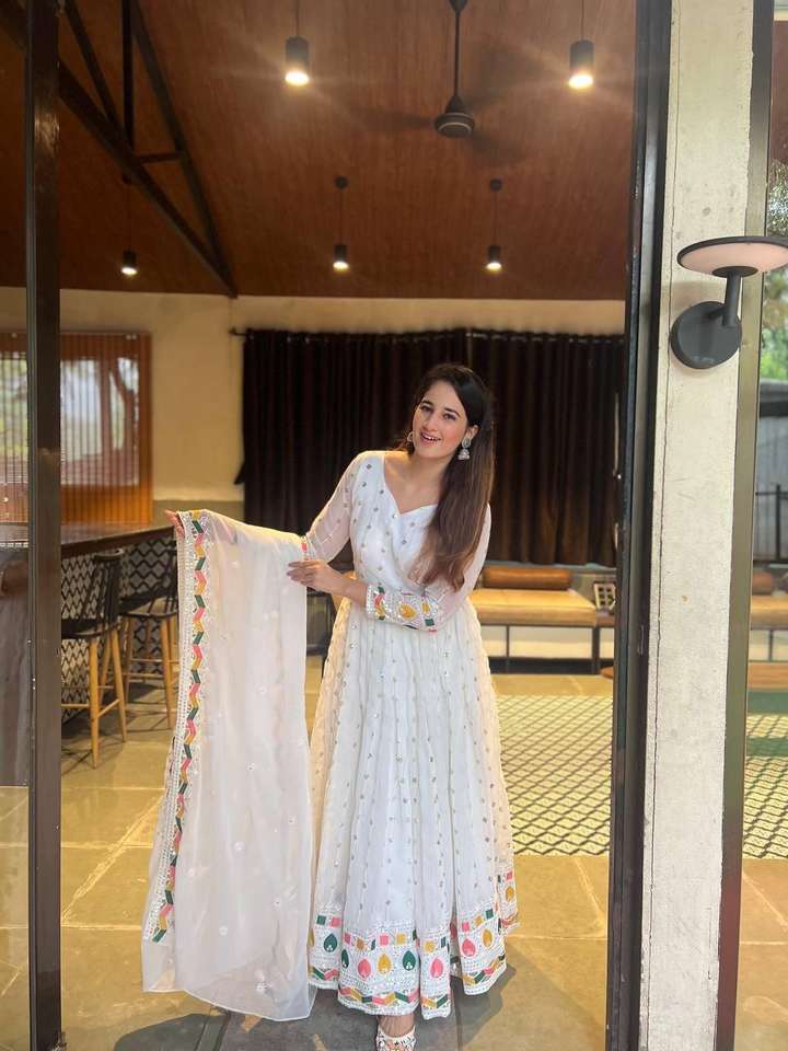 Anarkali y pantalón con bordado de lentejuelas de georgette sintético con dupatta