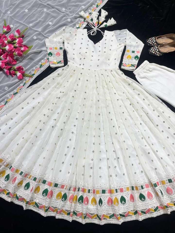 Última colección de diseñadores Faux Georgette Heavy Sequence Bordado Trabajo Anarkali Vestido y pantalón con Dupatta a precio mayorista