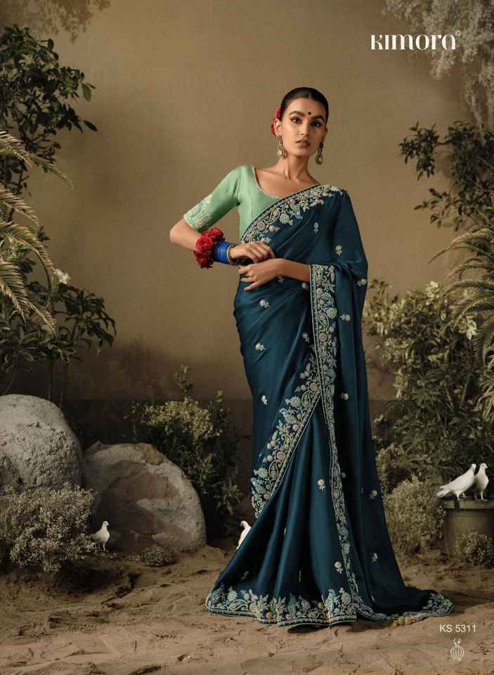 Último diseñador Doola seda bordado mano trabajo borde Sari por Fab Zone