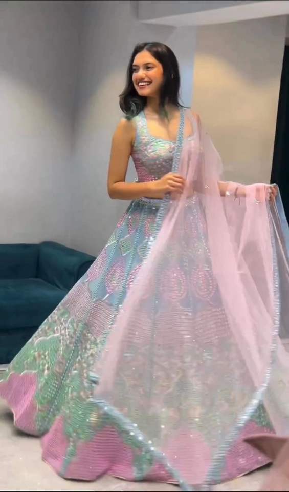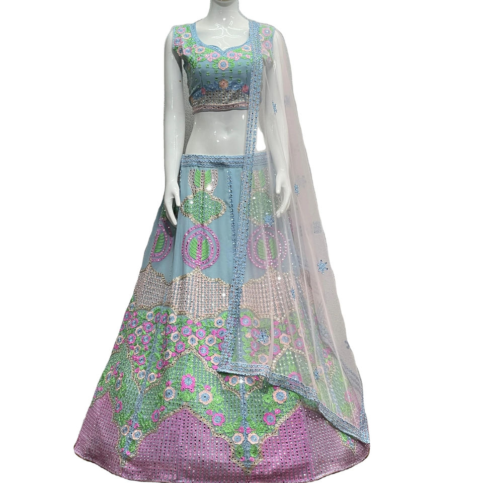El último diseñador Fab Zone de alta calidad Faux Georgette y Silk Saree Mirror Work Lehenga Choli para adultos para fiestas