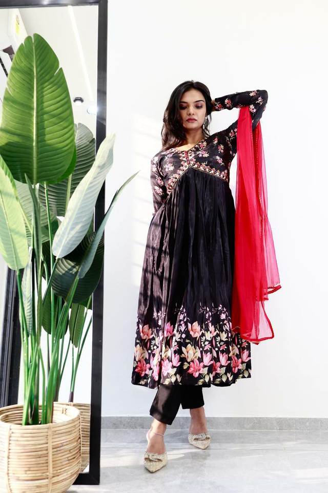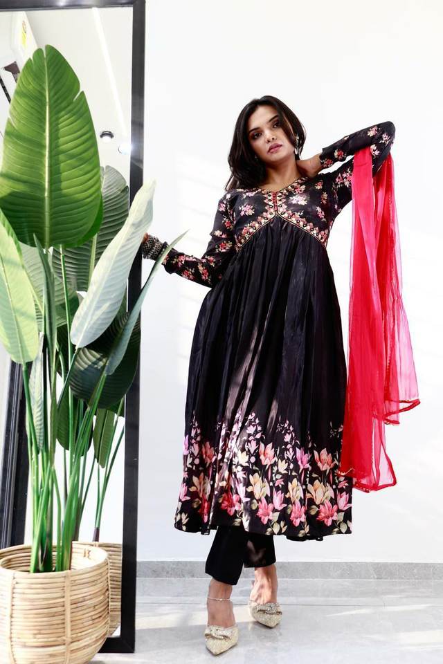 Último diseñador Faux Georgette gasa impresa mujeres indias Naira Cut Kurti Set precio asequible 2024 colección
