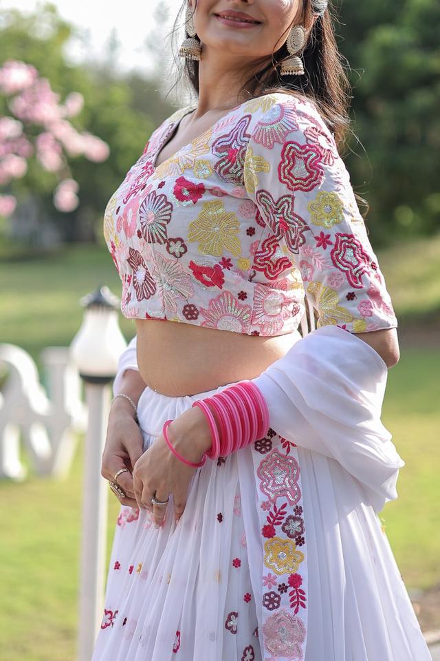 Último Diseño de Lehenga Choli para Mujer con Tejido de Georgette Sintética y Lentejuelas, Ropa India y Pakistaní para Fiestas y Festivales, Fab Zone