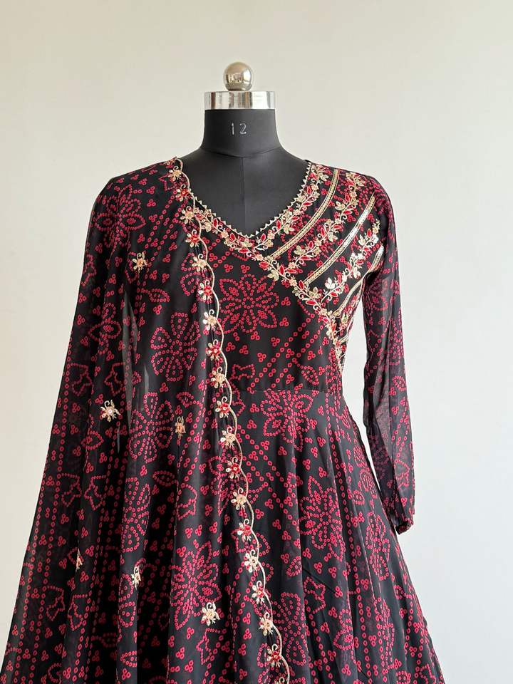 El último diseñador Faux Georgette Bordado Secuencia Vestido impreso digital por Fab Zone