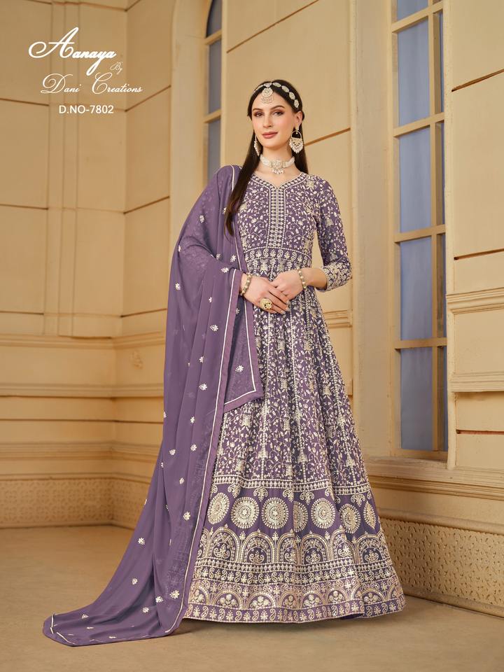 Vestido Anarkali de trabajo de secuencia de bordado de Georgette de imitación de diseñador más reciente de Fab Zone