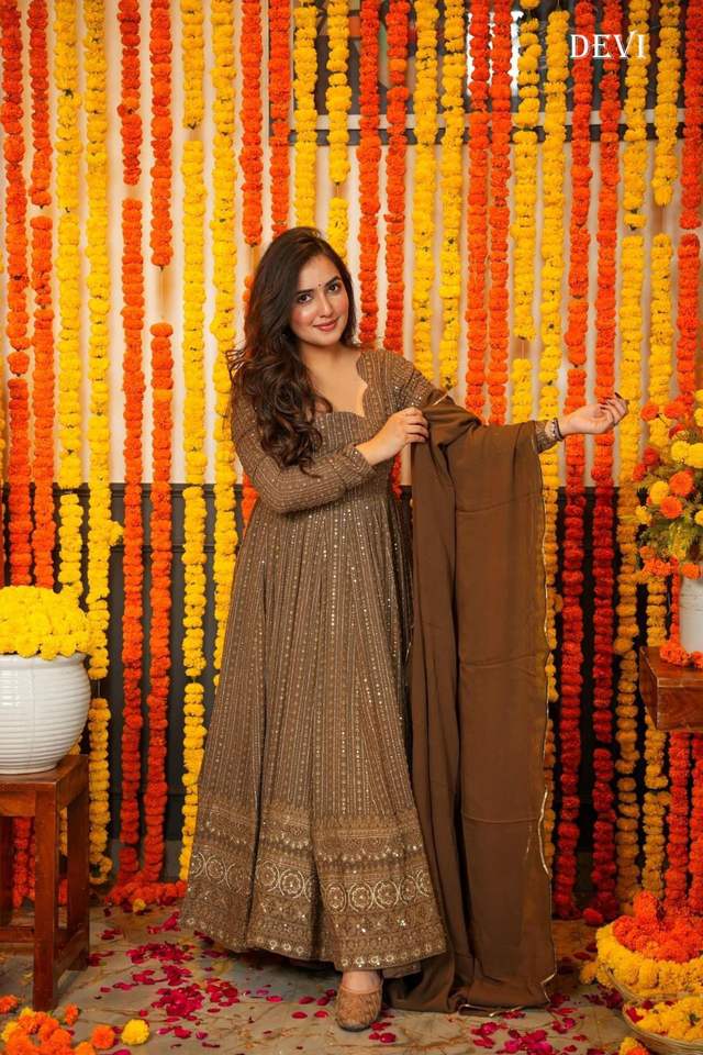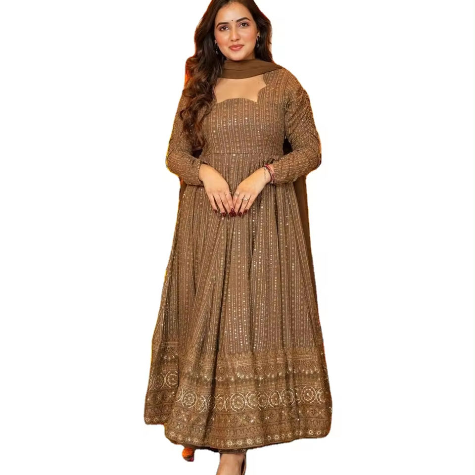 Vestido Anarkali de Georgette Sintética con Bordado Pesado y Lentejuelas, Diseño de Última Moda para Fiestas y Festivales, por Fab Zone, Alta Calidad