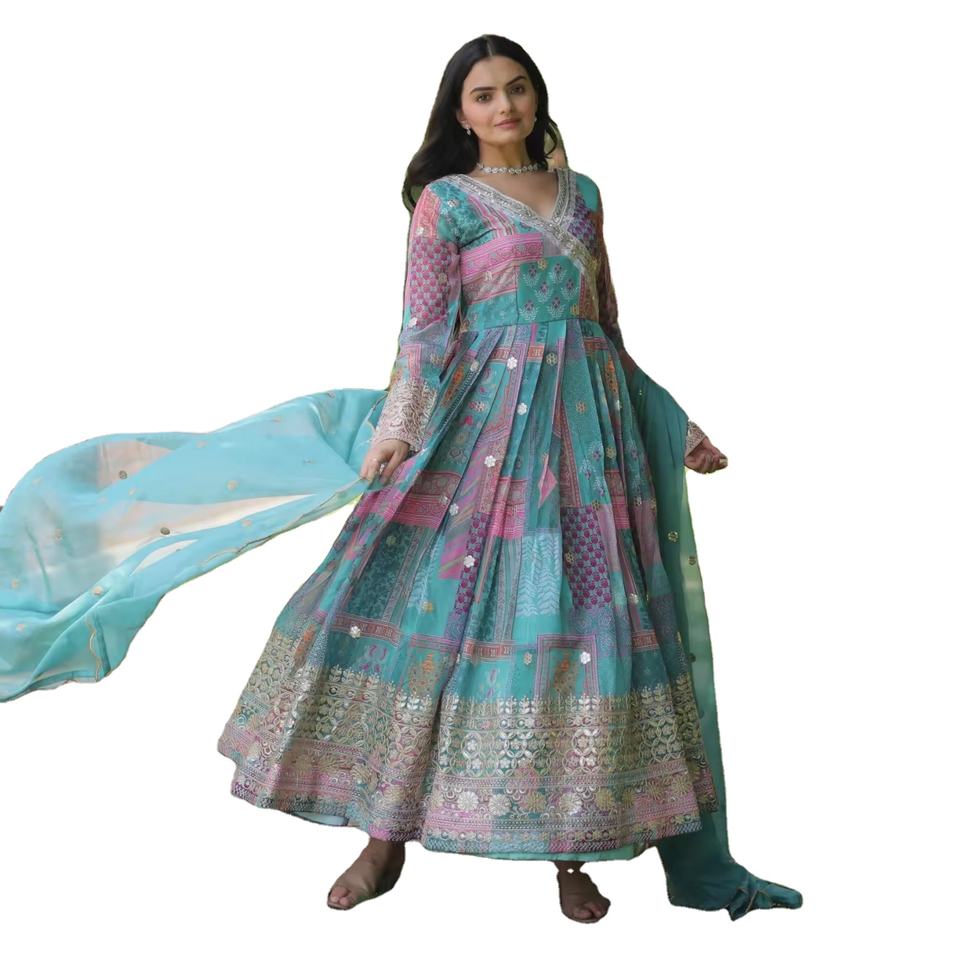 Vestido Anarkali de trabajo de secuencia de bordado de Georgette de imitación de diseñador más reciente de Fab Zone