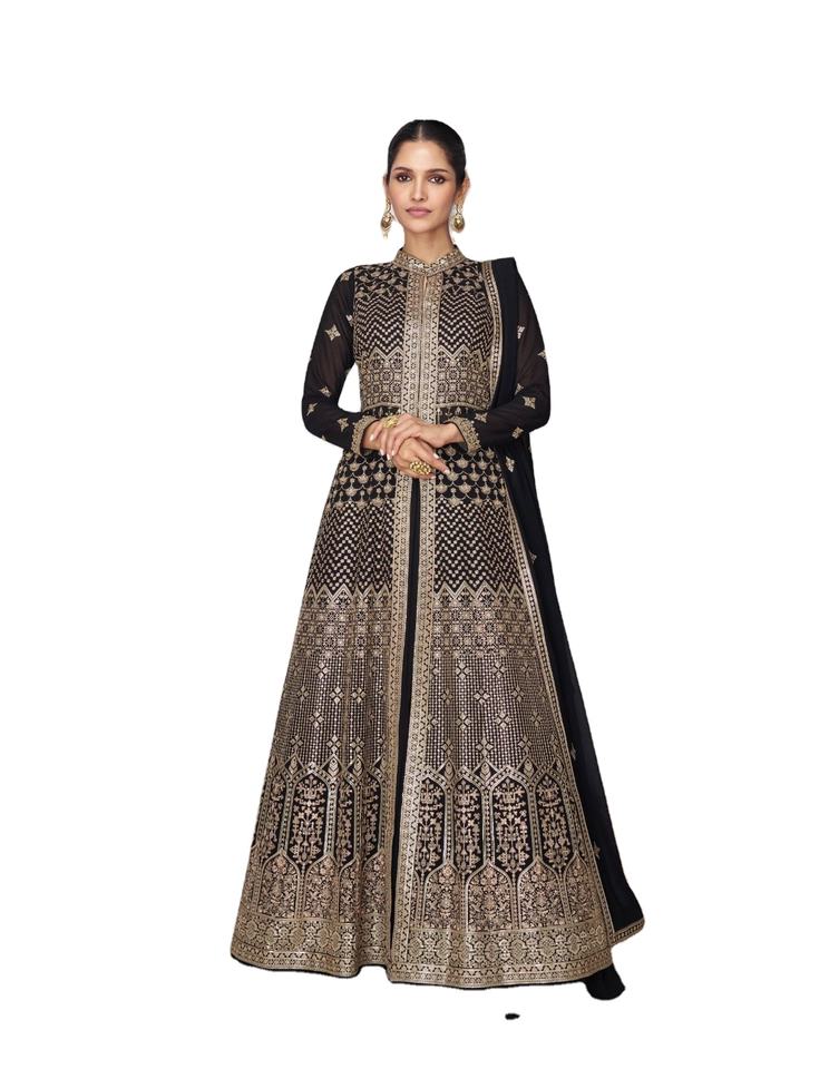 Vestido Anarkali de trabajo de secuencia de bordado de Georgette de imitación de diseñador más reciente de Fab Zone