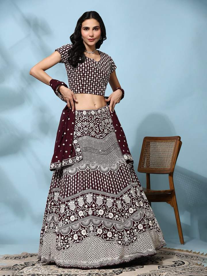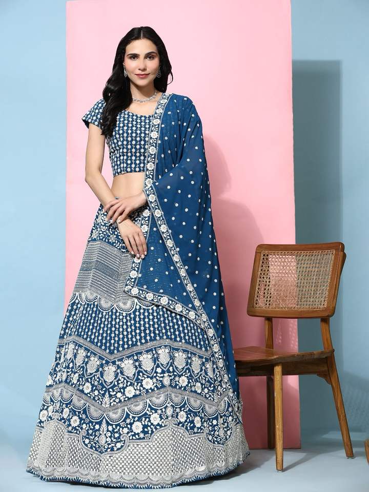 El último diseñador Faux Georgette Bordado Secuencia Hilo Trabajo Lehenga Choli Por Fab Zone