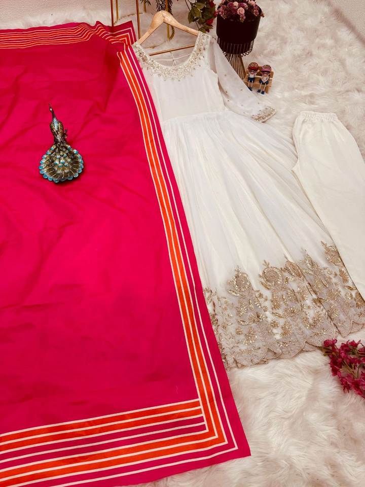 Vestido Anarkali de trabajo de secuencia de bordado de Georgette de imitación de diseñador más reciente de Fab Zone