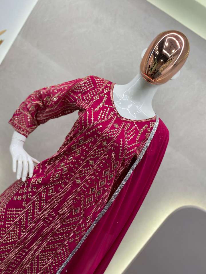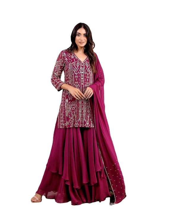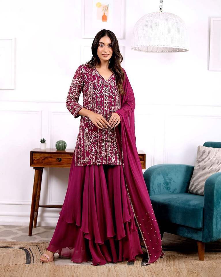 Último diseñador Faux Georgette bordado secuencia trabajo Sharara traje por Fab Zone