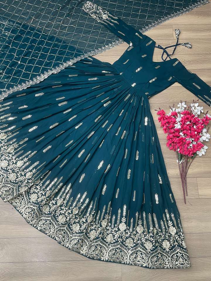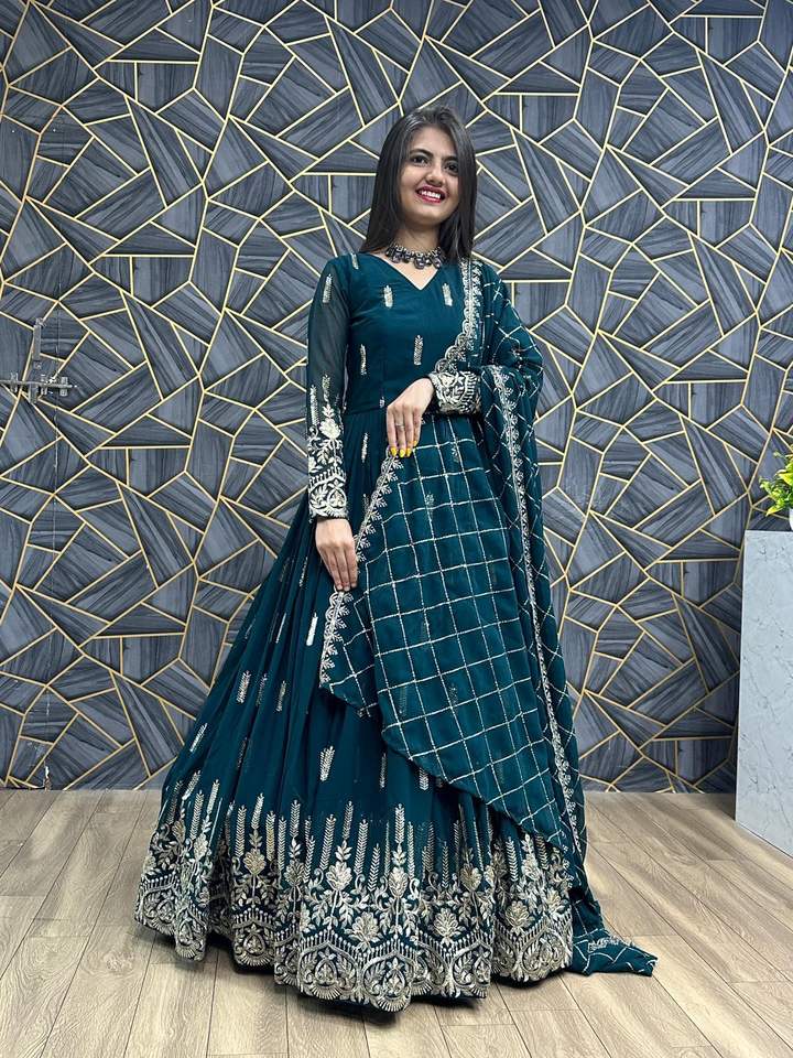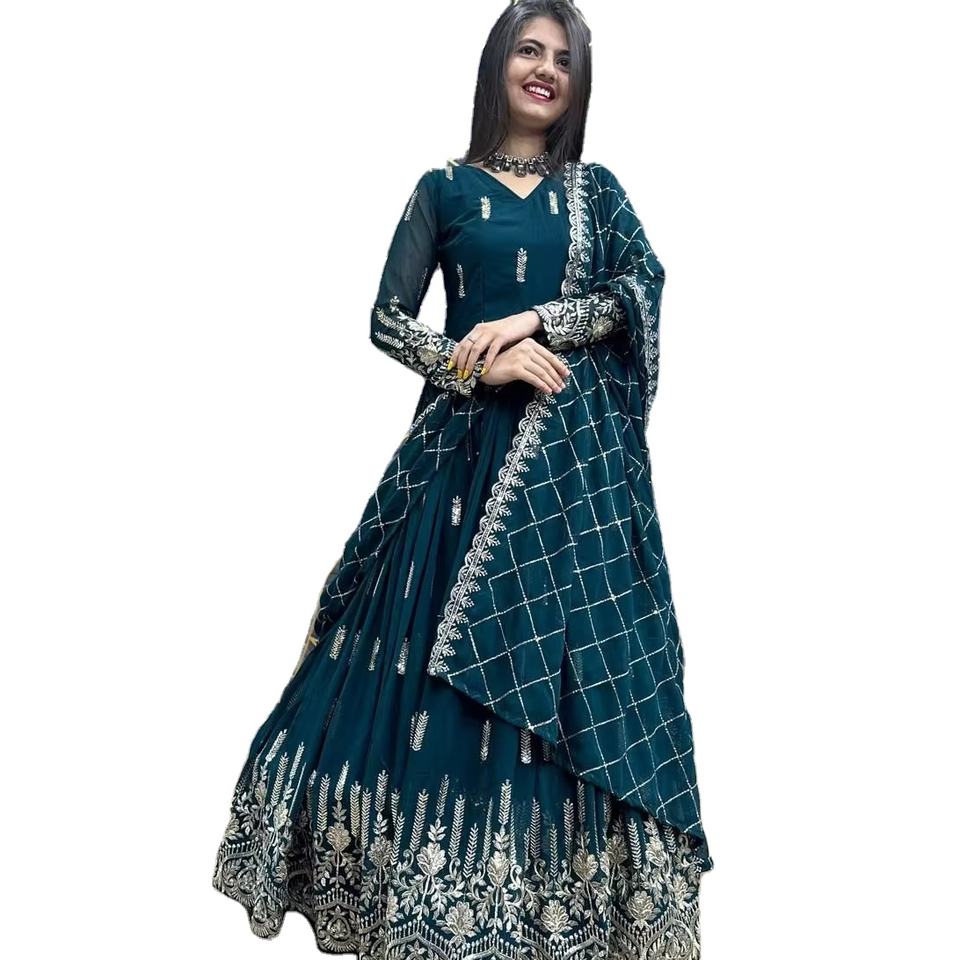 Vestido Anarkali de Mujer con Bordado Intenso en Faux Georgette, Diseño de Última Moda, para Fiestas y Festivales, de Fab Zone, Alta Calidad, Disponible en Stock