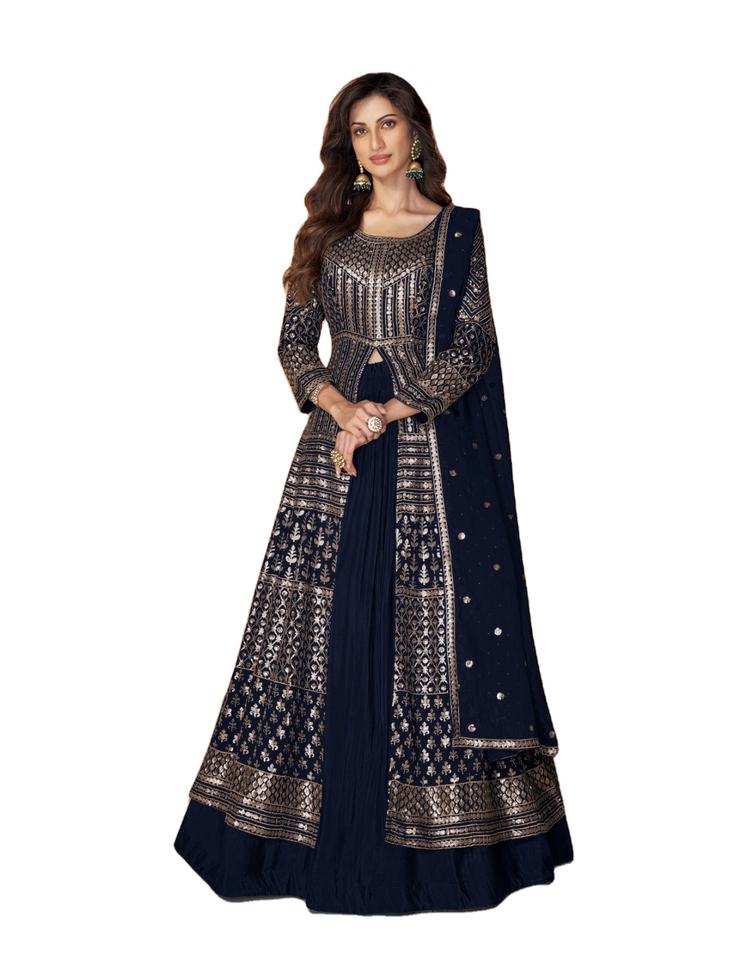Último diseñador Faux Georgette bordado trabajo Anarkali Vestido por Fab Zone