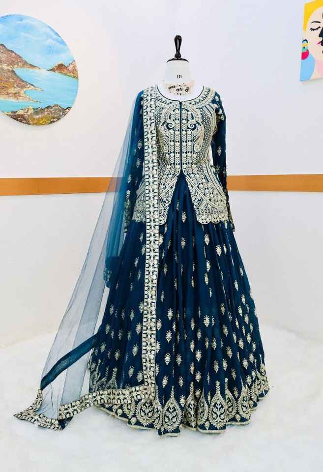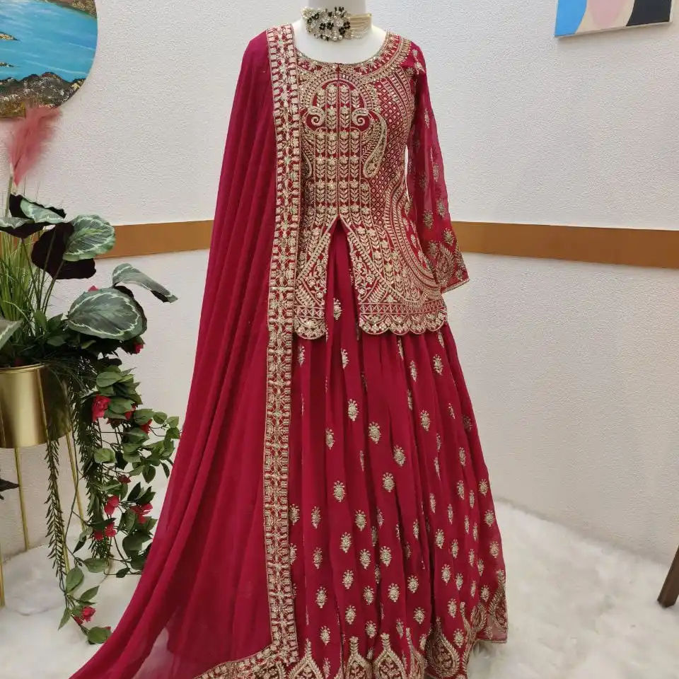 Último diseñador Faux Georgette Heavy bordado secuencia trabajo fiesta de mujeres Festival de alta calidad Lahenga Choli por Fab Zone