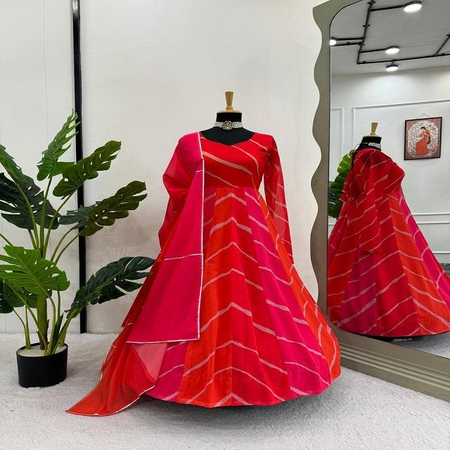 El último diseñador Faux Georgette Printed Work Anarkali Gown de FabZone