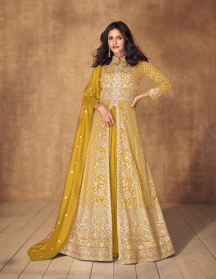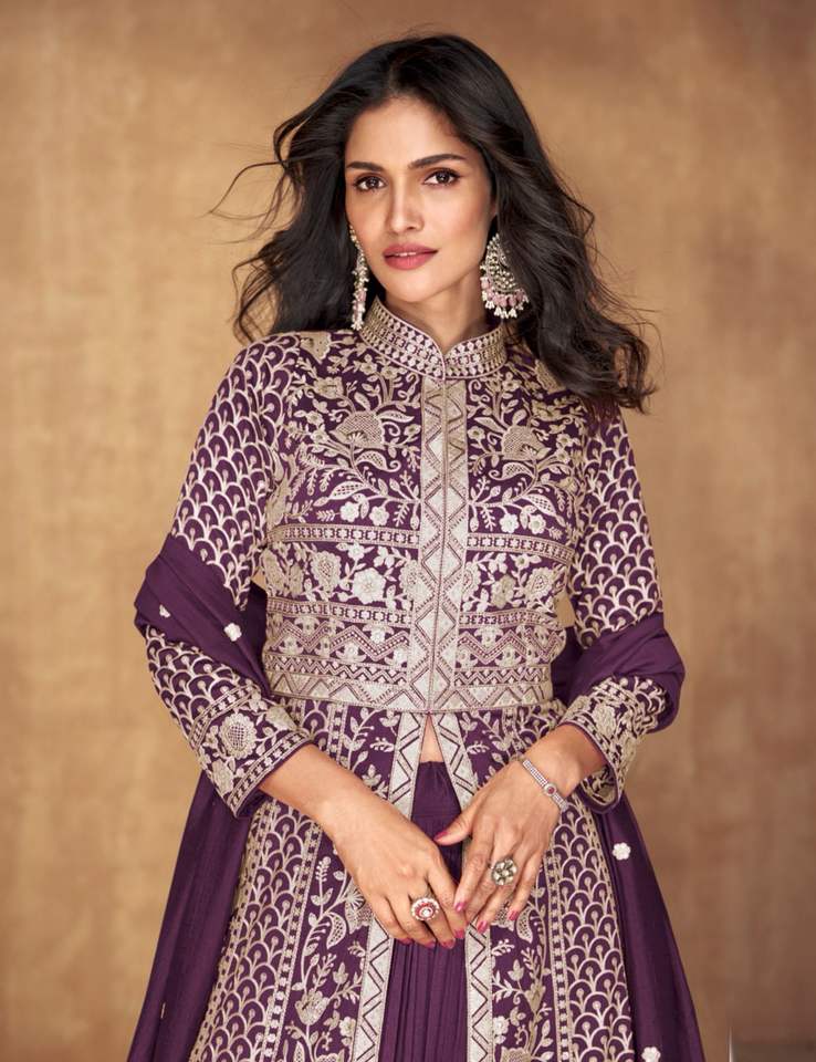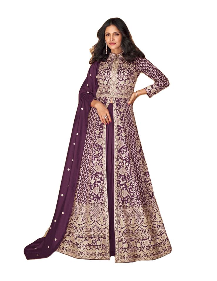 El último diseñador Faux Georgette Sequence Thread Work Bata de Fab Zone