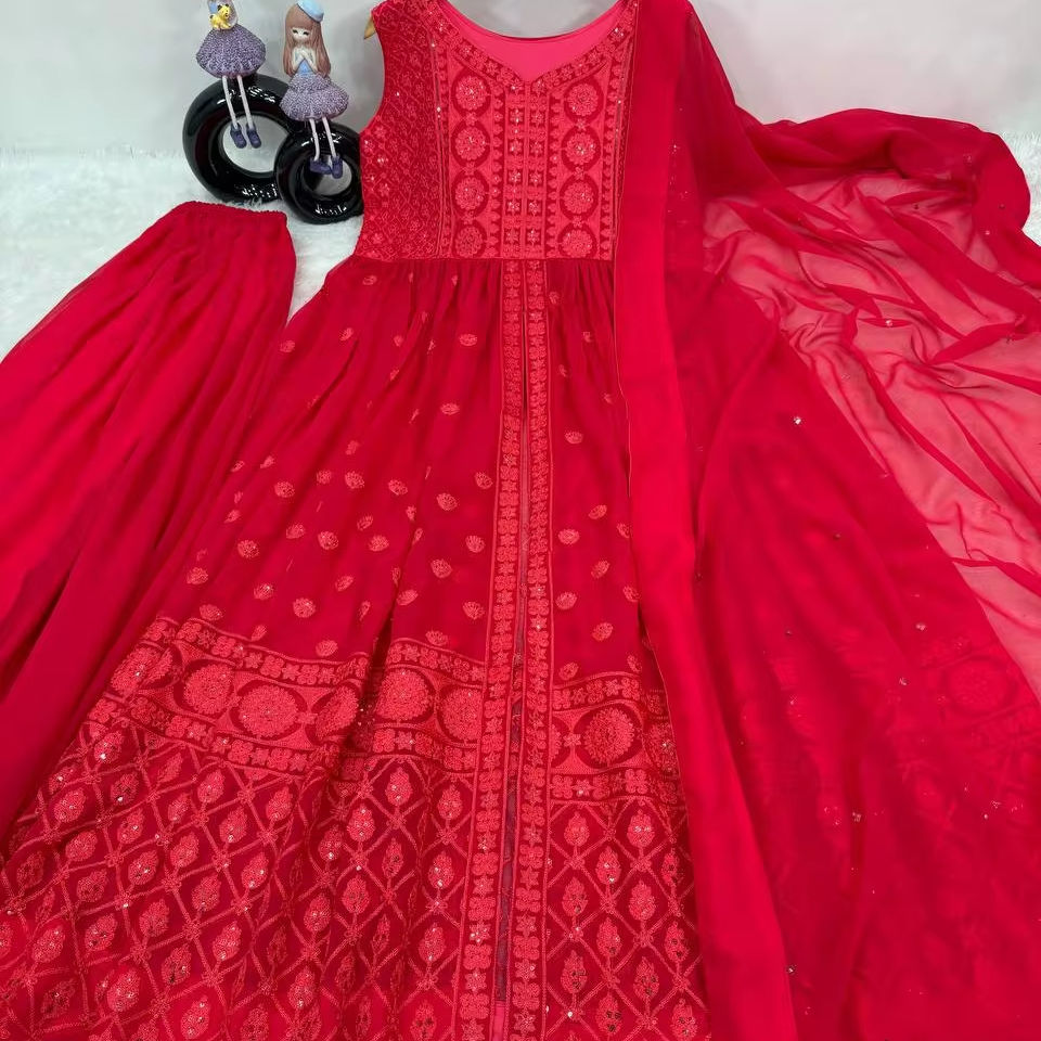 El último diseñador Faux Georgette Sequence Work Anarkali Gown de Fab Zone