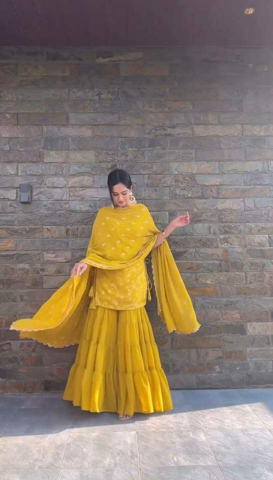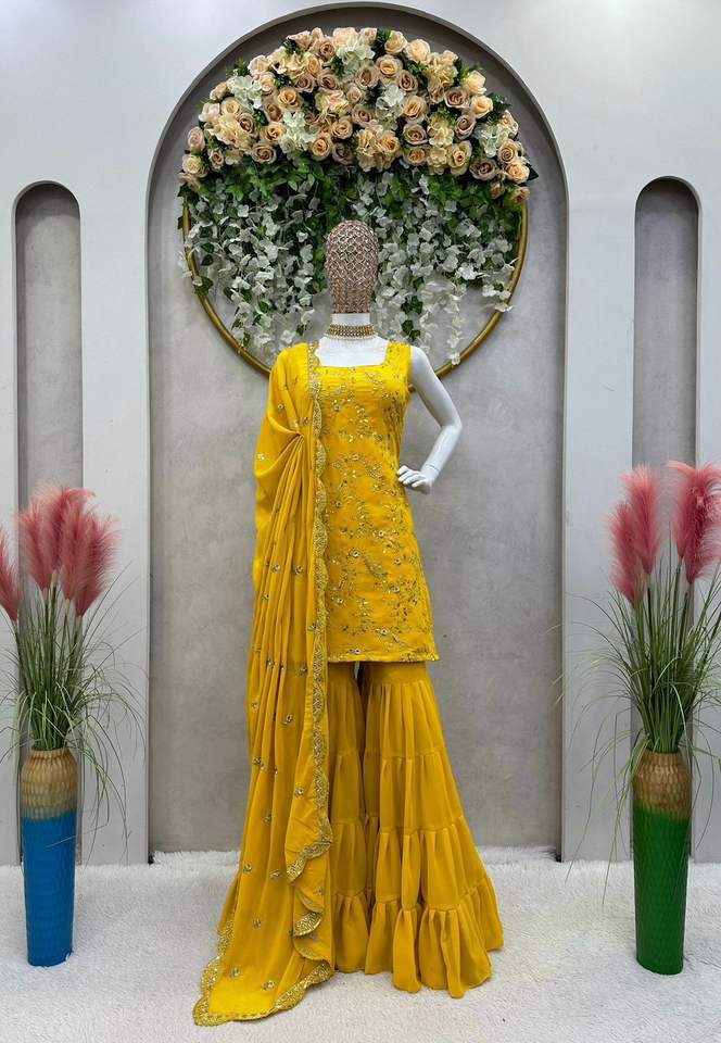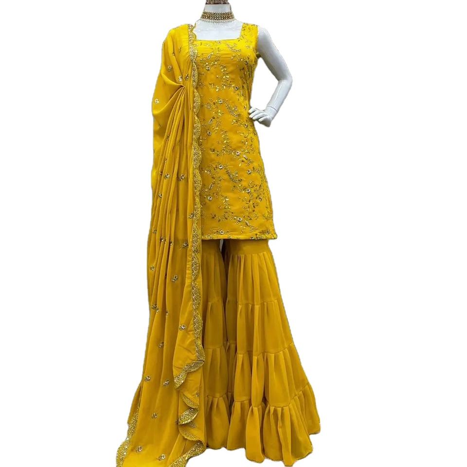 Último diseñador Fab Zone Faux Georgette hilo bordado secuencia trabajo Sharara traje indio y paquistaní ropa