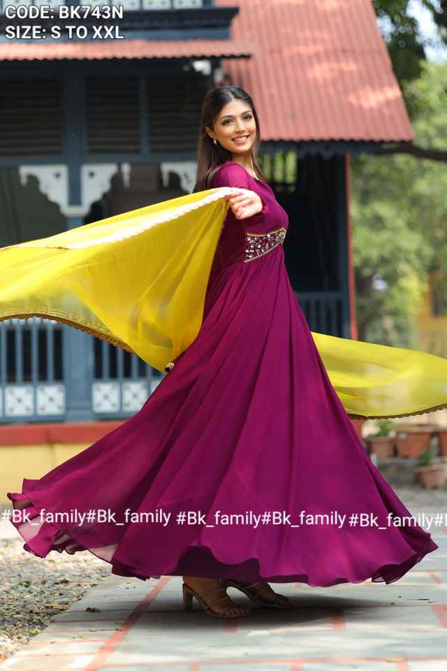 Último diseñador Faux Georgette Thread Organza Work Anarkali vestido de Fab Zone