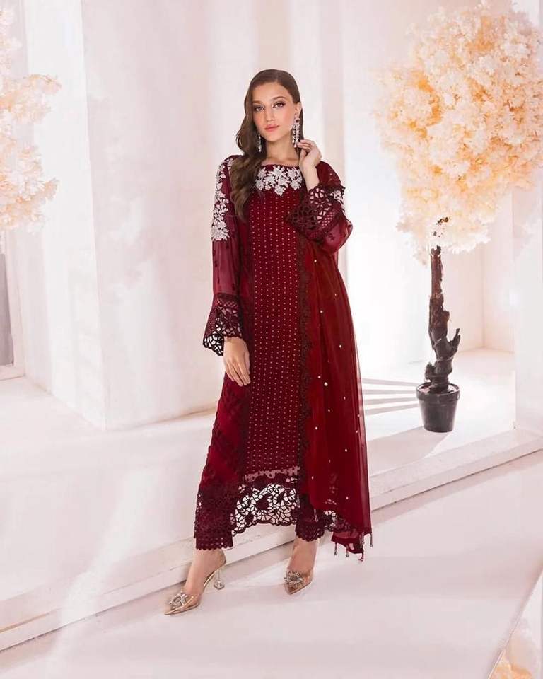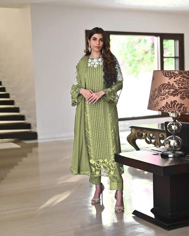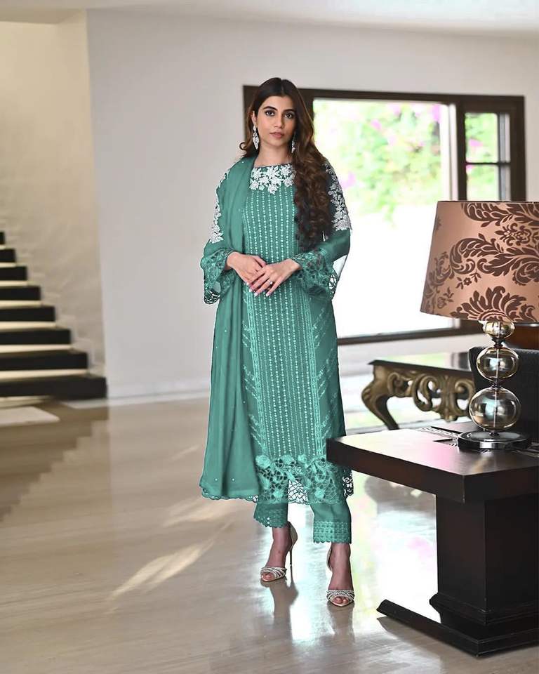 Último Diseñador Fax Georgette Bordado Secuencia Trabajo Kurti Set Por FabZone