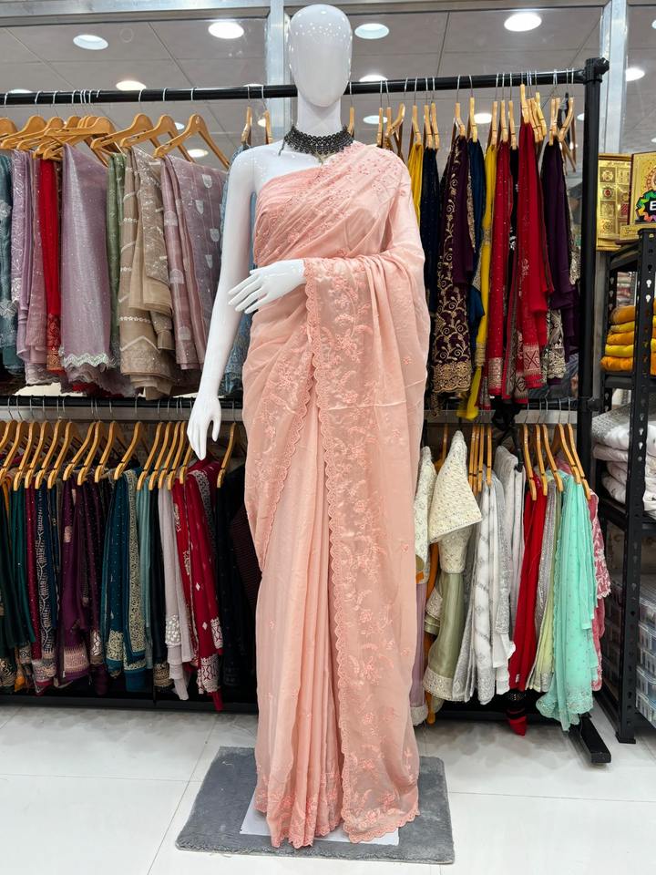 El último diseñador Georgette Silk Diamond Work Saree de Fab Zone