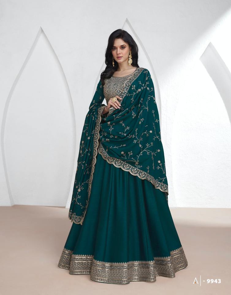 El último diseñador Georgette Seda Bordado Secuencia Trabajo Anarkali Vestido Por Fab Zone