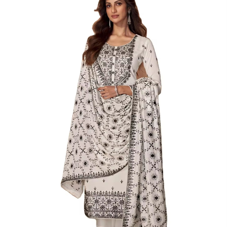 El último diseñador Georgette Silk Thread Sequence Work Kurti Set de Fab Zone