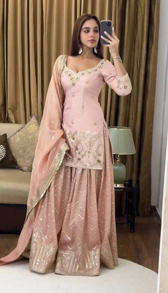 Traje Sharara de Alta Calidad para Mujer, Diseño de Última Moda, Georgette Pesada con Bordado y Lentejuelas, para Bodas, por FabZone