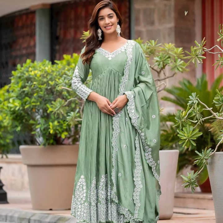 El último diseñador Heavy Faux Georgette bordado secuencia trabajo Anarkali Vestido por FabZone