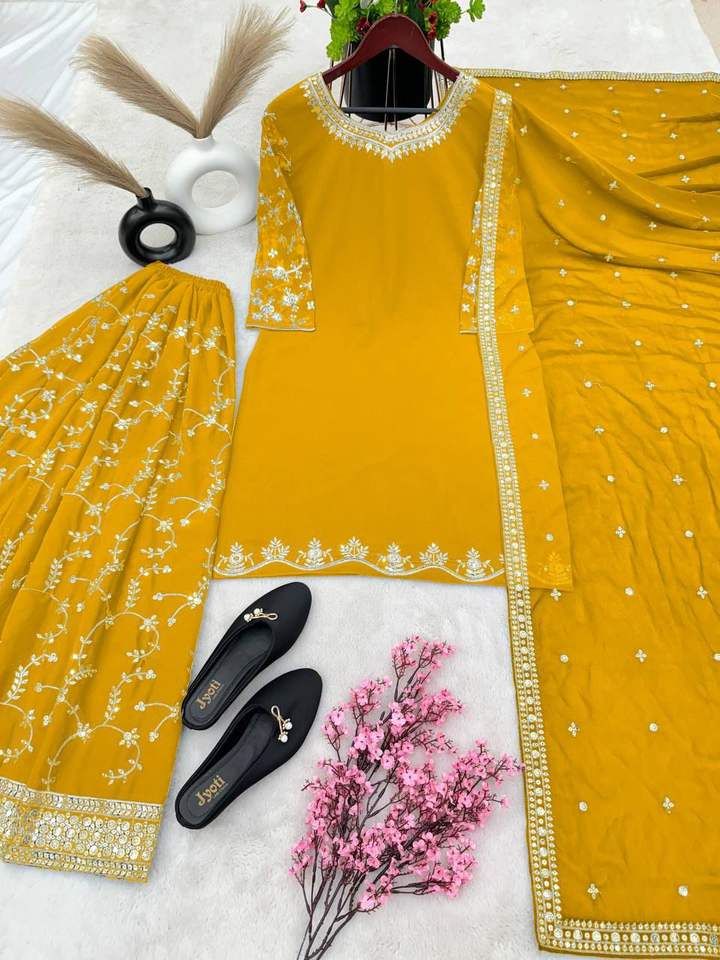 El último traje Sharara DE TRABAJO bordado de Georgette de imitación pesado de diseñador por FabZone