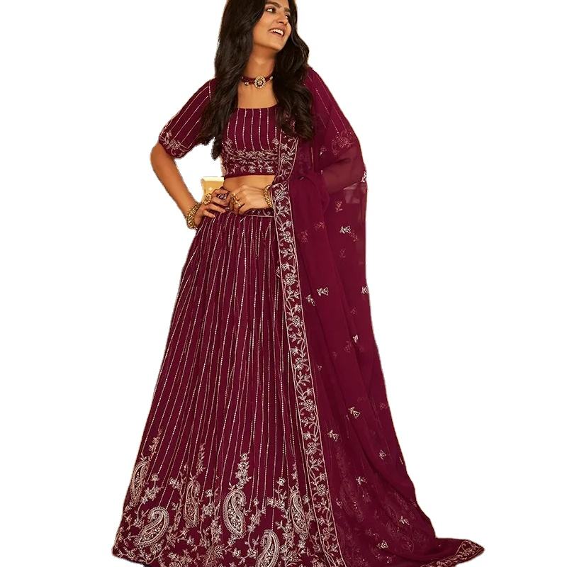 Último diseñador Heavy Faux Georgette hilo bordado secuencia trabajo Lehenga Choli por Fab Zone