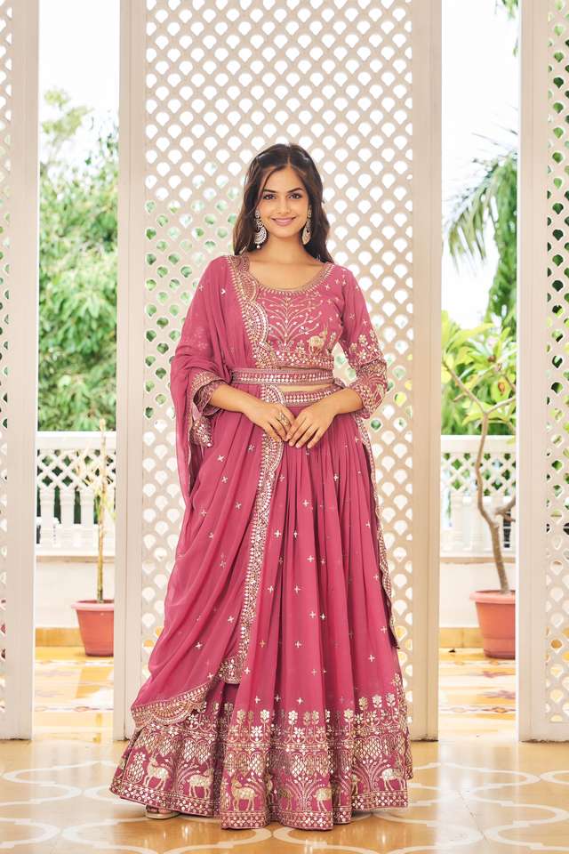 El último diseñador Heavy Faux Georgette Thread Bordado Work Lehenga Choli Indian Traditional Wear by Fab Zone