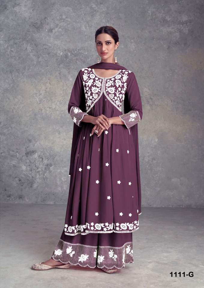 El último diseñador Heavy Rayon Thread Work Bordado Secuencia Trabajo Sharara Suit By Fab Zone