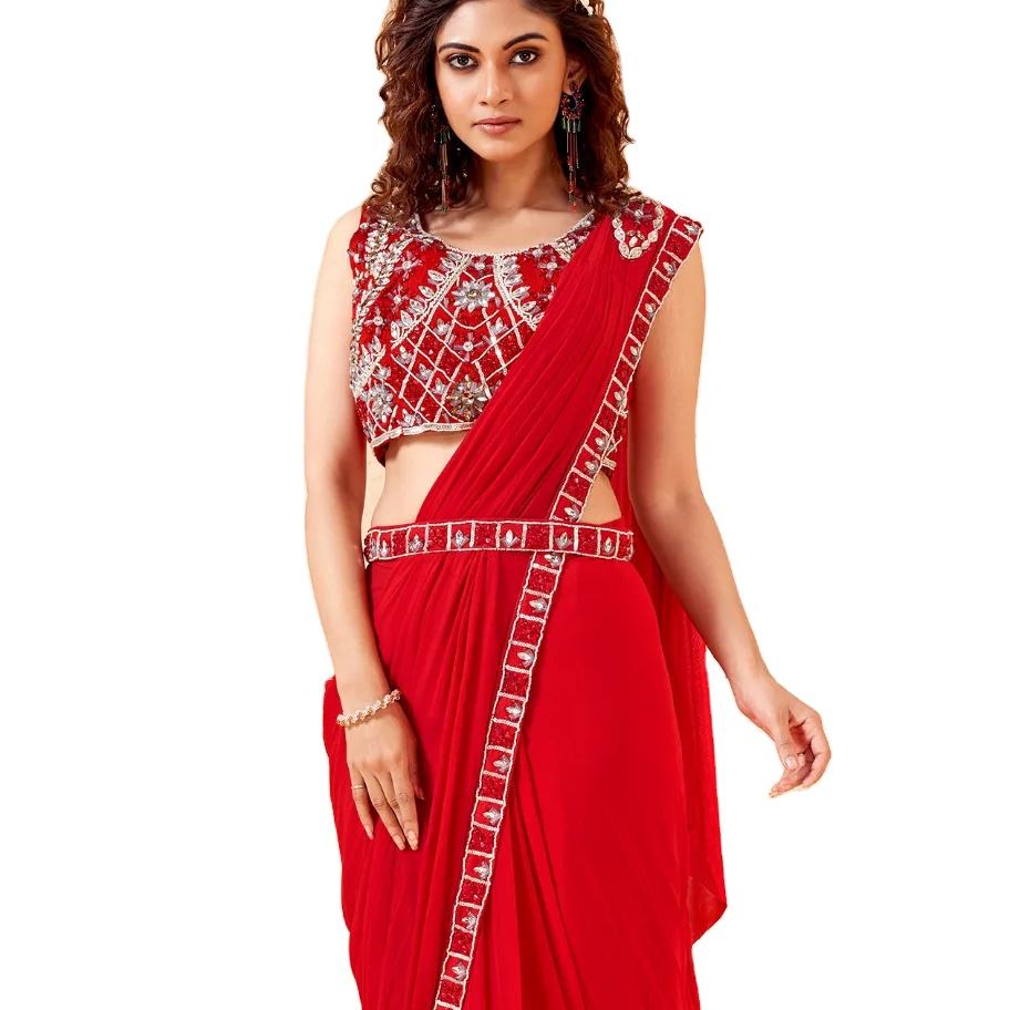 El último diseñador Heavy Sequence Mirror Work Listo para usar Saree