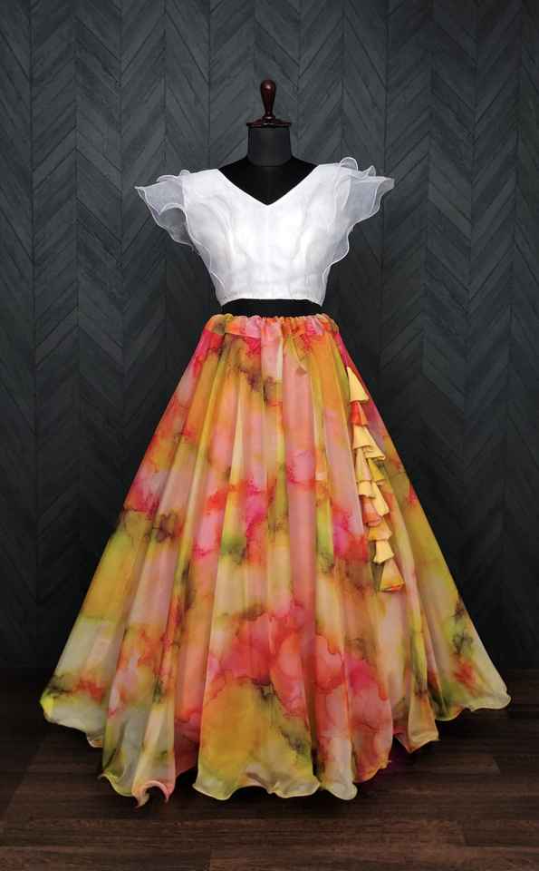 El último diseñador de alta calidad Lehenga Choli Party Wear Organza Impresión digital Mejor tarifa Ropa de mujer Bodas Fabricado Surat