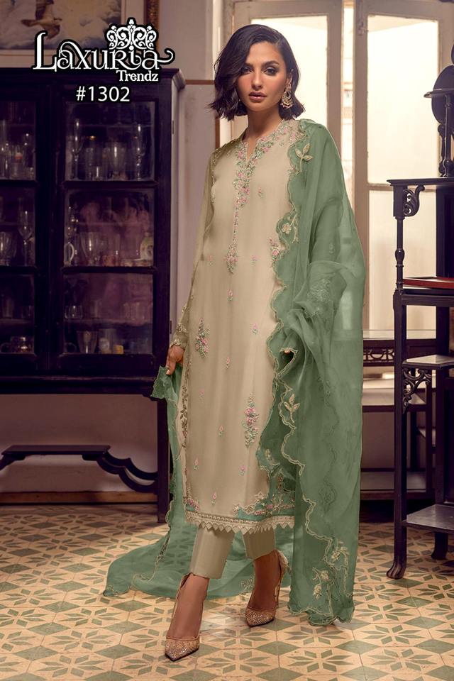 El último traje de Salwar de trabajo de secuencia de bordado de organza de diseñador por Fab Zone