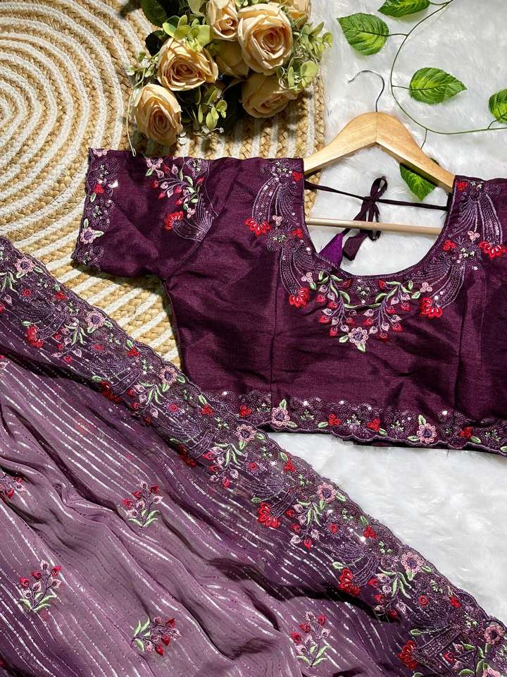 Nombre del Producto:Atractivo Saree de Georgette Suave y Puro
